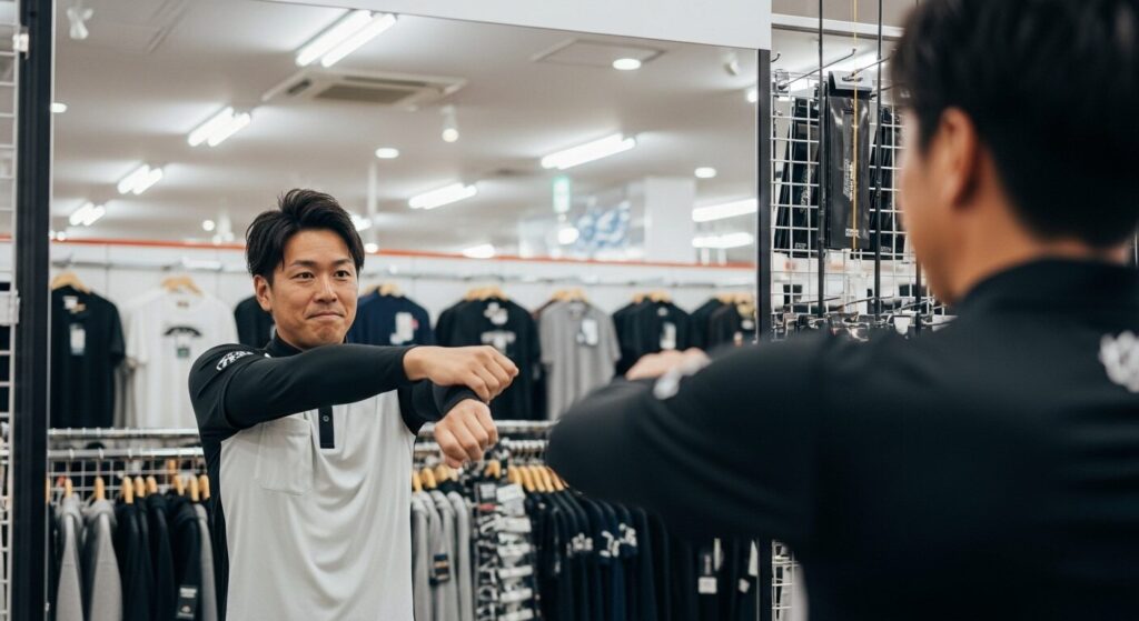 アウトドアウェアは、メーカーによってサイズ感が結構違います。特に袖の長さや身幅は、動きやすさに直結する重要なポイント。可能であれば、一度釣具店などで試着してみるのが失敗しない一番の近道です。